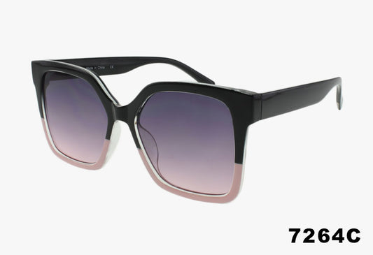 7264C - Wholesale Square Frame Two Tone Fashion Sunglasses